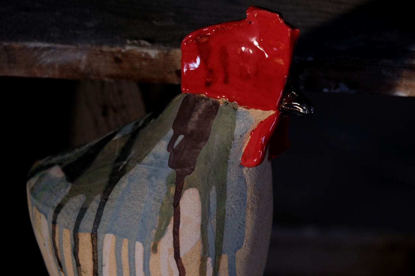 Kurka Bogusia - rzeźba ceramiczna ręcznie zrobiona. Kurka wykonana z jasnego szamotu, swobodnie barwiona angobami oraz czerwonym szkliwem. Wyjątkowa i niepowtarzalna w swojej formie.
